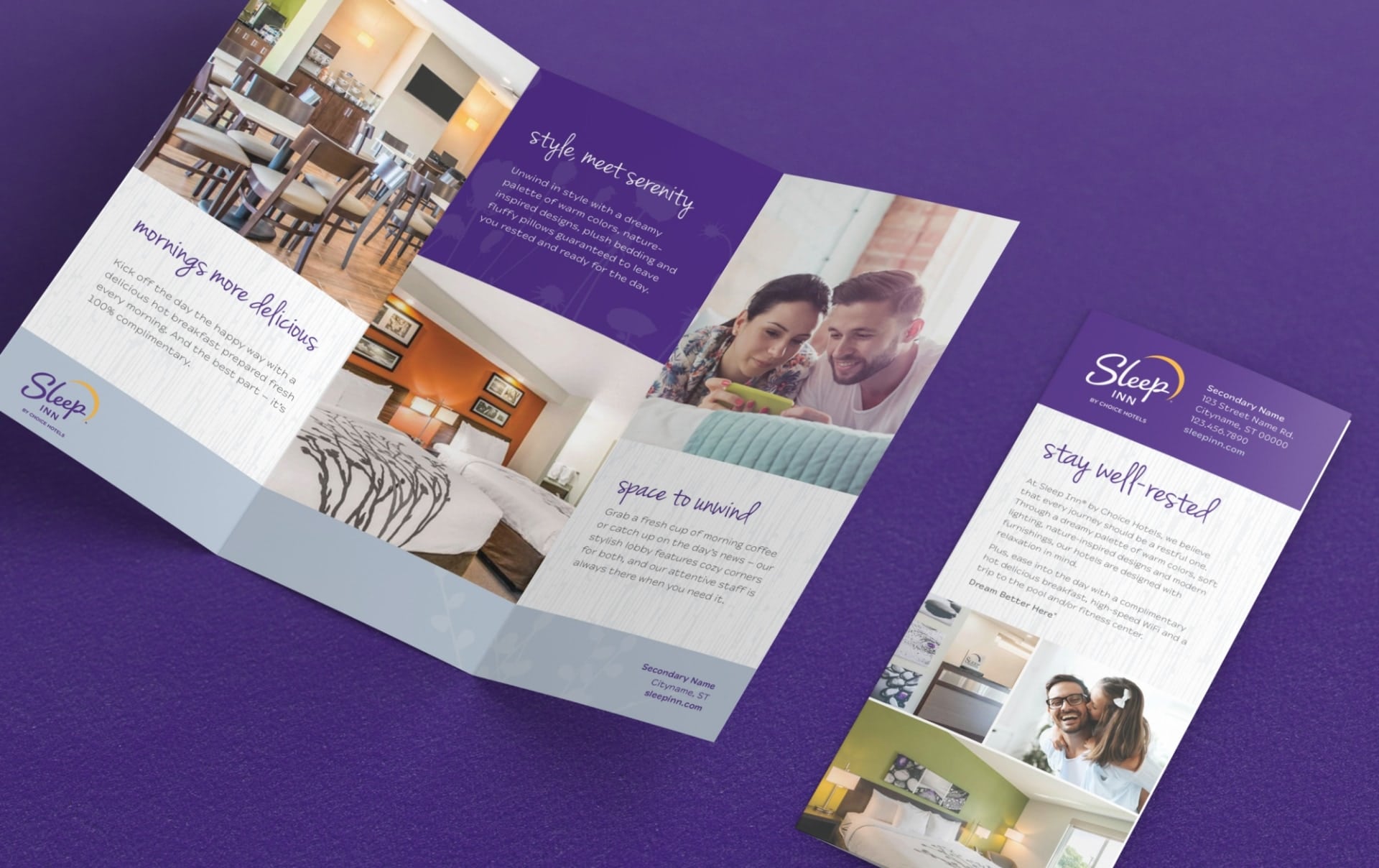 NM+U had to create a fresh brand identity that remained true to the brand’s existing nature-inspired zen feel while also bringing the brand into a more modern space. Sleep Inn also wanted to keep purple and yellow colors to retain brand recognition.