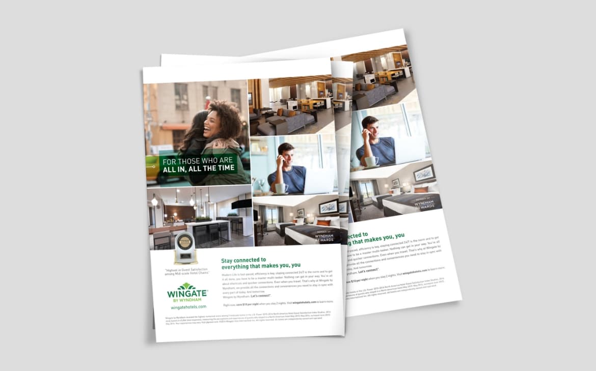 Wingate by Wyndham, a midscale hotel brand with nearly 200 properties across North America. The brand wanted to build awareness of their award-winning hotels, business-traveler-friendly features, and the Wyndham Rewards loyalty program with busy, on-the-go customers.